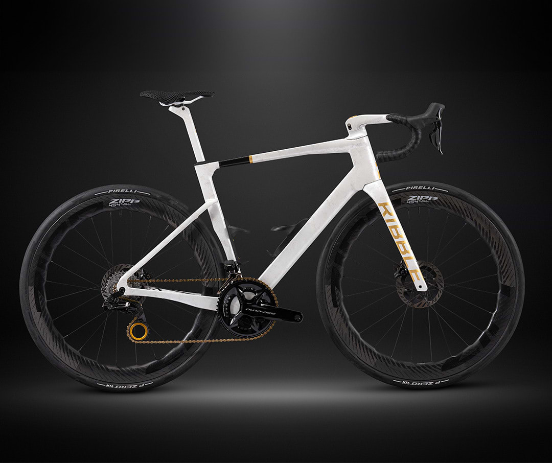 The Allroad SL R marks a new era in high-performance versatility, redefining what you can expect from a premium carbon road bike. Finished in a striking pearl white paint with gold leaf details, a gold chain, and oversized pulley wheel, it’s built to stand out. Intricate gold leaf detailing on the top tube completes this bold, refined aesthetic.